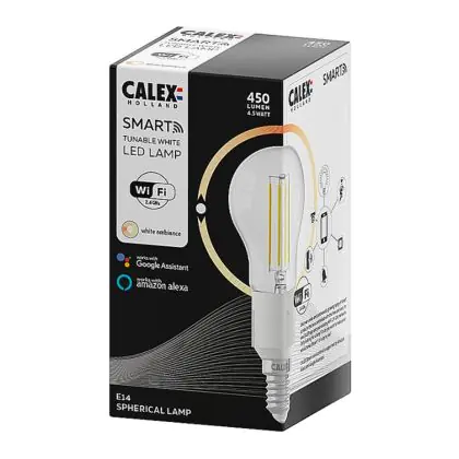 Calex Smart Tuya Wifi E14 Kugel 4.5W 450lm - 818-830 Abstimmbares Weiß | Dimmbar - Ersatz für 40W
