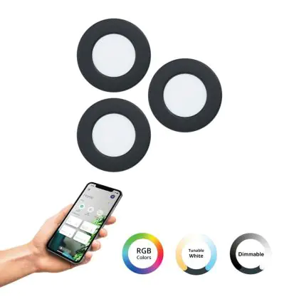 Eglo Connect.Z Smart Einbau Spot Badezimmerbeleuchtung Fueva 6-Z Plastik Schwarz 8.4W 1020lm - 827-865 Abstimmbares Weiß + RGB | Dimmbar