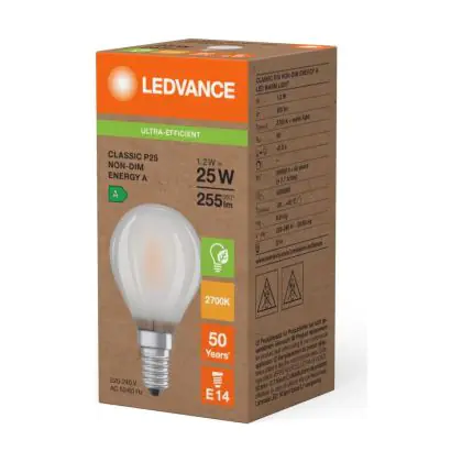 | Herstellername | LED CLASSIC P ENERGY EFFICIENCY A S 1.2W 827 Frosted E14 | |