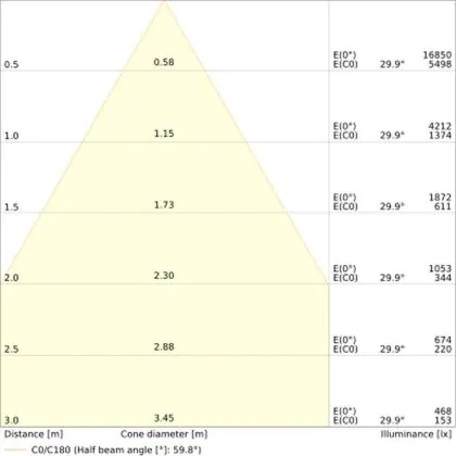 Der Abstrahlwinkel bezeichnet den Winkel, in dem das Licht aus der Lichtquelle ausgestrahlt wird. Er wird in Grad (D) angegeben. Je geringer die Gradzahl des Abstrahlwinkels ist, desto kleiner ist auch der Durchmesser des Lichtkegels, den die Lichtquelle produziert.