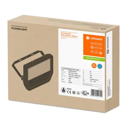 Ledvance LED-Scheinwerfer GEN 3 Schwarz 50W 6000lm 100D - 865 | IP65 - Symmetrisch - Ersatz für 100W