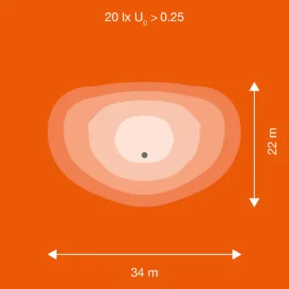 Der Abstrahlwinkel bezeichnet den Winkel, in dem das Licht aus der Lichtquelle ausgestrahlt wird. Er wird in Grad (D) angegeben. Je geringer die Gradzahl des Abstrahlwinkels ist, desto kleiner ist auch der Durchmesser des Lichtkegels, den die Lichtquelle produziert.