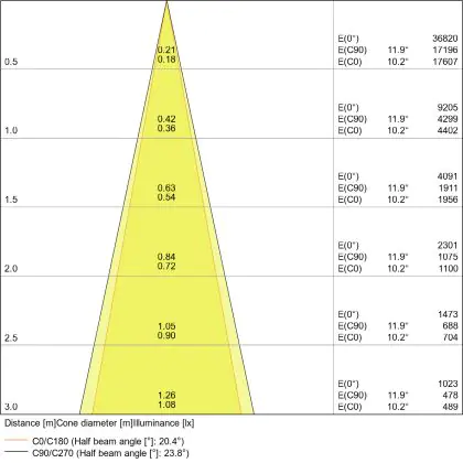 Der Abstrahlwinkel bezeichnet den Winkel, in dem das Licht aus der Lichtquelle ausgestrahlt wird. Er wird in Grad (D) angegeben. Je geringer die Gradzahl des Abstrahlwinkels ist, desto kleiner ist auch der Durchmesser des Lichtkegels, den die Lichtquelle produziert.