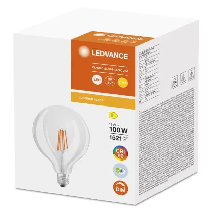 Ledvance Superior Classic LED E27 Globe Fadenlampe Klar 11W 1521lm - 927 | Höchste Farbwiedergabe