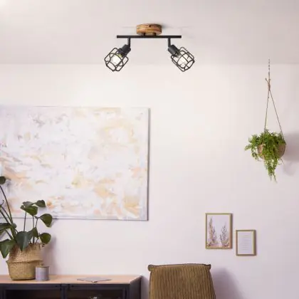 Brilliant Gwen Plafonnier Métal Bois Noir | Convient pour 2x E14