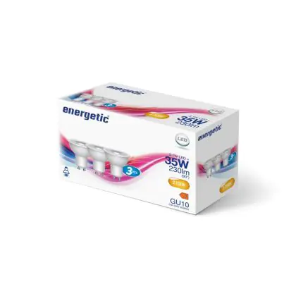 Description Bulk 105x Energetic LED Spot GU10 PAR16 3.1W 230lm 36D - 827 Blanc Très Chaud | Équivalent 35W