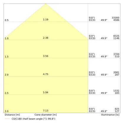 Le code couleur se compose de l'indice de rendu des couleurs (IRC) et de la température de couleur (Kelvin). Le premier chiffre indique le rendu des couleurs (1 = très mauvais rendu des couleurs, 9 = meilleure authenticité des couleurs). Le deuxième et troisième chiffre indiquent la température de la couleur. Exemple : Le code couleur "830" indique que la lampe a un bon rendu des couleurs (8) et une couleur de lumière blanche chaude (30 = 3000K). |