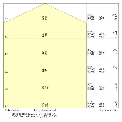 Le code couleur se compose de l'indice de rendu des couleurs (IRC) et de la température de couleur (Kelvin). Le premier chiffre indique le rendu des couleurs (1 = très mauvais rendu des couleurs, 9 = meilleure authenticité des couleurs). Le deuxième et troisième chiffre indiquent la température de la couleur. Exemple : Le code couleur "830" indique que la lampe a un bon rendu des couleurs (8) et une couleur de lumière blanche chaude (30 = 3000K). |