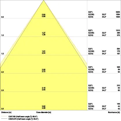 - Angle de diffusion: 65 °