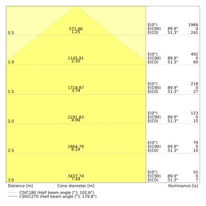 Le code couleur se compose de l'indice de rendu des couleurs (IRC) et de la température de couleur (Kelvin). Le premier chiffre indique le rendu des couleurs (1 = très mauvais rendu des couleurs, 9 = meilleure authenticité des couleurs). Le deuxième et troisième chiffre indiquent la température de la couleur. Exemple : Le code couleur "830" indique que la lampe a un bon rendu des couleurs (8) et une couleur de lumière blanche chaude (30 = 3000K). |