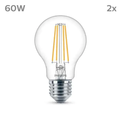 Description Lot 2x Philips Ampoule LED E27 Poire Filament Claire 7W 850lm - 840