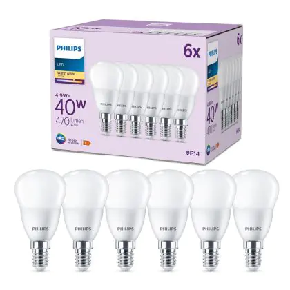 Cette ampoule Lot 6x Philips Ampoule LED E14 Poire Dépolie 5W 470lm - 827 est l’alternative idéale pour la remplacement de votre ampoule classique de W. La technologie LED intégrée vous offrira de nombreux avantages. Les ampoules à incandescence traditionnelles ont une durée de vie limitée. Cette alternative LED vous permettra de profiter d’un éclairage durable et fiable.