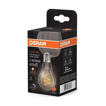 Cette ampoule Osram Vintage 1906 LED Classic E27 Poire Filament Claire 4.6W 470lm - 922 | Meilleur Rendu De Couleur - Dimmable - Remplacement 40W est l’alternative idéale pour la remplacement de votre ampoule classique de 40 W. La technologie LED intégrée vous offrira de nombreux avantages. Les ampoules à incandescence traditionnelles ont une durée de vie limitée. Cette alternative LED vous permettra de profiter d’un éclairage durable et fiable.