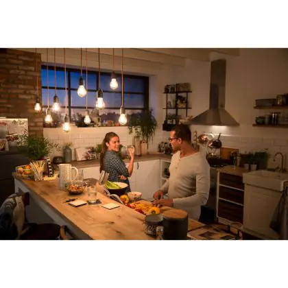 Lorsque vous réduisez l'intensité de vos lumières, vous n'utilisez pas la pleine puissance pour les faire fonctionner. Vous faites donc des économies supplémentaires sur les coûts énergétiques. Avec des ampoules dimmables, vous pouvez également créer une atmosphère plus chaleureuse. Gardez à l'esprit que vous avez besoin d'un variateur de lumière pour faire varier l'intensité des lumières LED ("dimmer"). Vous voulez en savoir plus sur l'éclairage dimmable ? Lisez notre article de blog.