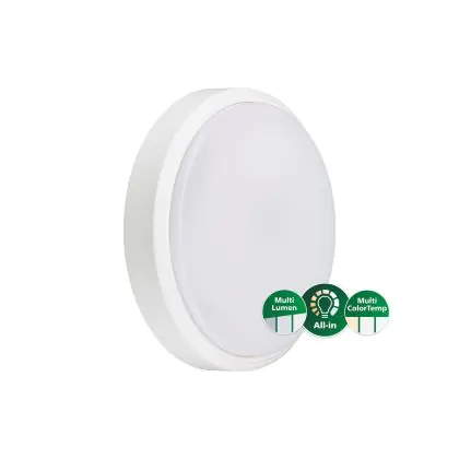 Le Philips Hublot LED Coreline WL140V Blanc 36.3W 3300lm - 827-830-840 CCT | 390mm - IP65 peut très bien être appliqué au mur qu’au plafond. Ce hublot est un luminaire étanche principalement installé dans les lieux de passages. Avec sa technologie LED Intégré, le hublot Philips à un faible impact sur l’environnement et à une durée de vie pouvant tenir jusqu’à 50000 heures. Ce hublot peut également être installé en extérieur et est capable de supporter des températures extrêmes. Il offre une couleur de lumière de 2700K - 4000K Tunable White et un flux lumineux de 3300 Lm.