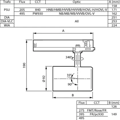 Description Philips Spot LED Sur Rail GreenSpace Evo Projecteur Blanc 39.5W 4900lm 41x80D - 830