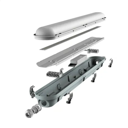 La réglette LED, Réglette LED Étanche V2.0 18W 2500lm - 865 | 60cm - Câblage Traversant (5x2.5mm2) est conçue pour remplacer les réglettes TL-D traditionnelles et permettant d’économiser jusqu’à 50% d’énergie. Très souvent utilisé pour l’éclairage d’entrepôts, d’usines, de parking et d’autres grands espaces extérieurs. Très simple d’installation, cette réglette de 60cm peut se fixer au plafond et au mur et projette 6500K - Lumière du Jour, comme couleur de lumière. La Réglette LED Étanche V2.0 18W 2500lm - 865 | 60cm - Câblage Traversant (5x2.5mm2) dispose d’un indice de protection IP65 à l’eau et la poussière et d’une résistance aux chocs IK10.